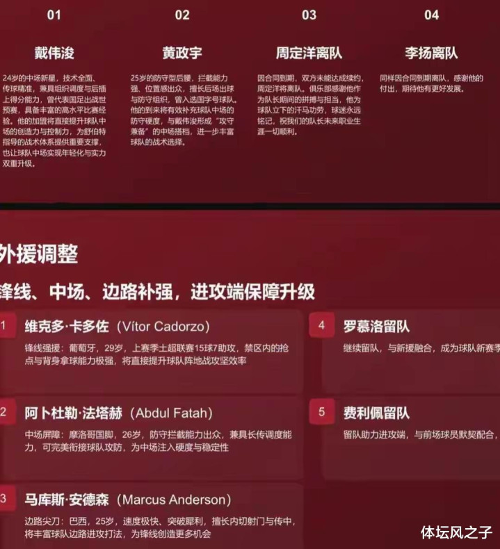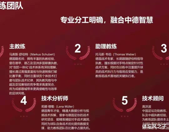 下赛季成皆蓉城的指标笃信依旧是争冠的,而要是念念要赓续冲击冠军的话,就必须对现存气势进行补强,就在近日,疑似成皆蓉城新赛季的一份引援名单露出了出来,成皆蓉城球迷圈一霎流传起两页对于新赛季主帅及引援名单的PPT,不外现在尚无法笃信这些信息的委果性,领先从PPT履行来看,成皆蓉城新赛季主帅疑似锁定为德国教养马库斯·舒伯特,但是在各大体育网站和专科数据库中,却莫得找到这位教养的干系信息。
