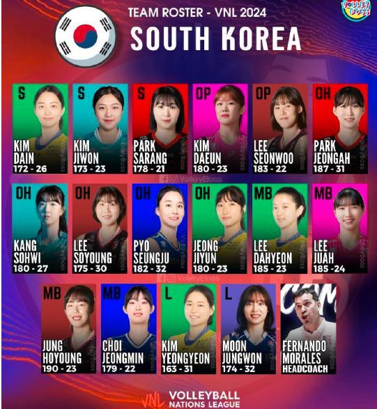 2024年宇宙女排联赛韩国队16东说念主名单如下: