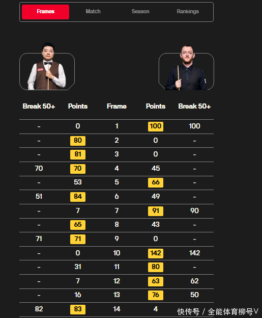 关于两东说念主在第一阶段的弘扬,宇宙斯诺克巡回赛官微是这么模式的:“2024斯诺克巡回锦标赛1/4决赛,马克-艾伦打出一杆破百,丁俊晖打出单杆70分,3-1跨越艾伦参预局间休息。休息记忆,艾伦扳回一局,比分来到2-3。”